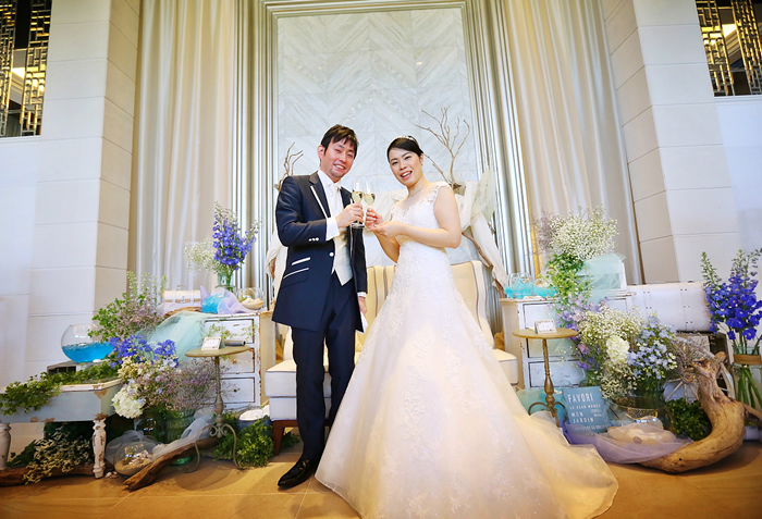 結婚式では、テーマに合わせてメインソファを海テイストにしたり、祝い餅つきの演出「めでたや」を選んでくださり、ゲストの方へのおもてなしをとても重視してくださいましね!