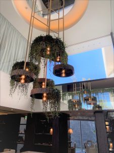 カーテンが開いていくとガーデンも会場も真っ暗でテラスには何かを持ってポーズをとるおふたり