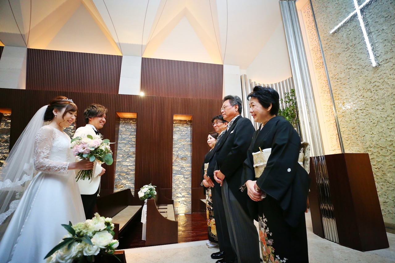 誓いを立て、親族、ご友人、会社関係の方