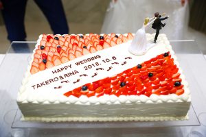 落としたケーキは偽物でケーキイベントを盛り上げるためにおふたりが用意したダミーケーキ入場という演出でした。
