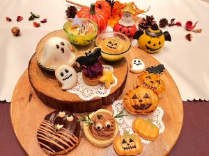 パティシエ特製スイーツにハロウィンモチーフをデコレーションして、