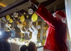 クライマックスではホワイトチョコのパウダーが入った風船を割って