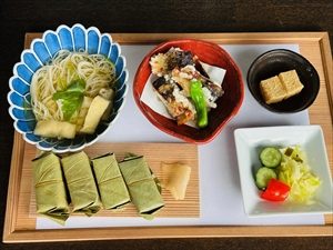 お昼ご飯は奈良のご当地めし、柿の葉寿司と三輪そうめんが食べられるお店へ。こちらもワンコを連れて行くことができて助かりました。