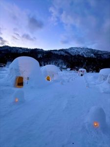 雪山でクタクタになった後は、かまくらを見に行きました。