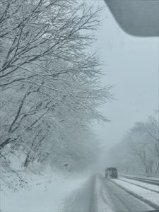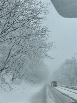 (まさかの3月の大雪。雪景色って素敵だと思いませんか?車の運転は夫にお任せして、私は助手席から雪景色を撮影して楽しんでいました。)