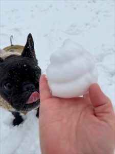 (〝う〇こ〟の形に雪玉が作れる道具を発見!この〝雪う〇こ〟愛犬が大喜びでハムハムしていました。我が家の大ヒット商品です笑)