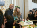 大きなケーキなら 食べさせあいっこも大きく!!あきらさんの顔はクリームだらけになりました☆