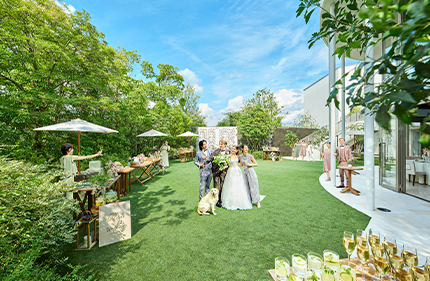 ガーデンとひとつながりの開放感。ゆったり広いパーティ会場