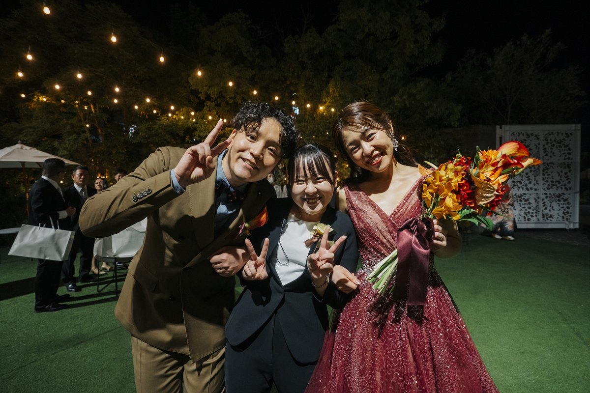 続くガーデンセレモニーは、全員参加型のイベントを行います!お菓子まきやウェルカムビュッフェで大盛り上がりでした◎