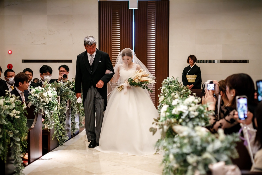 教会式では、おふたりの緊張が自然にほぐれるほど元気いっぱいに指輪を届けてくれた『ハギー君』