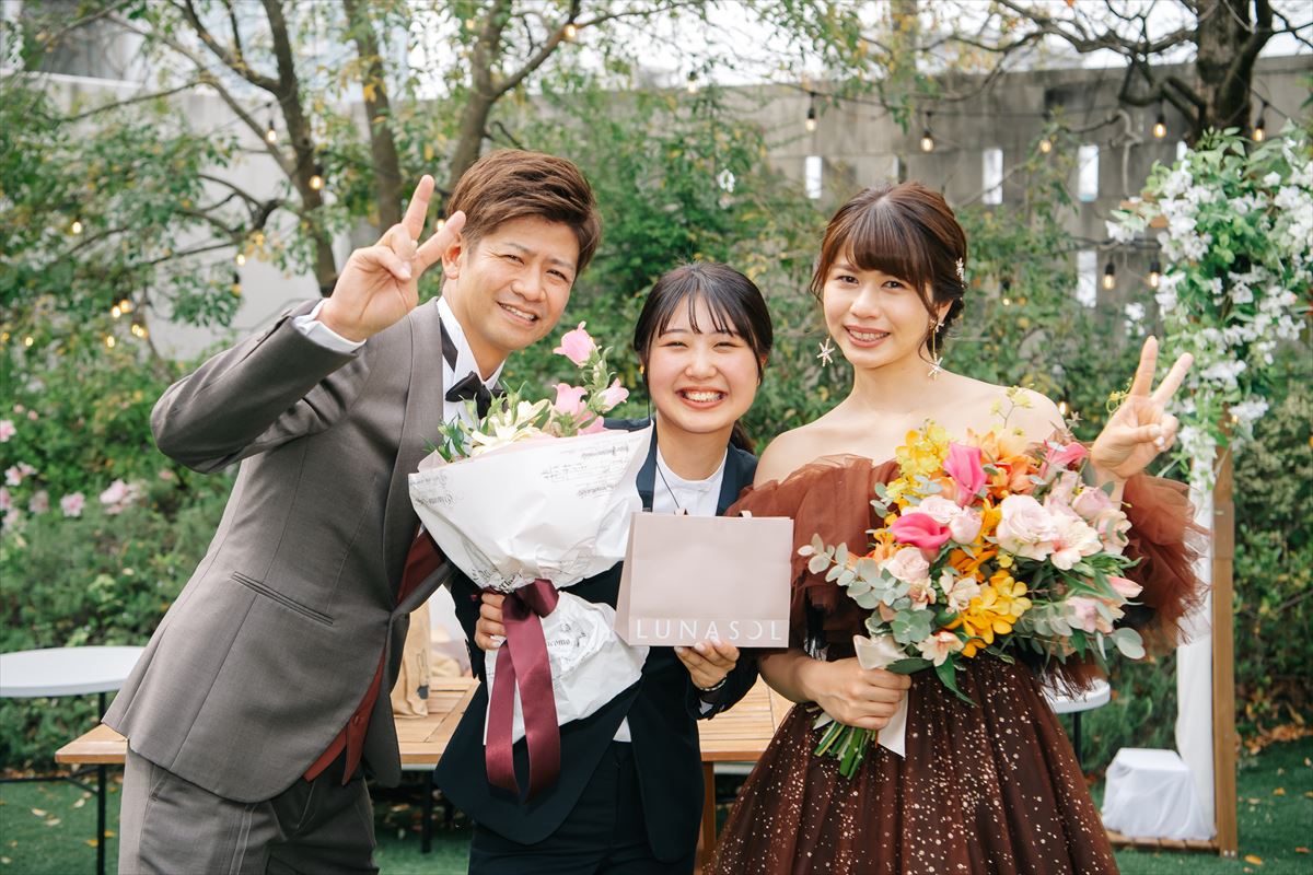 ガーデンイベントでは、大人も子供も嬉しい【お菓子まき】で盛り上がります!ふみかさんによる女性参加のコスメブーケトスも行いました♪